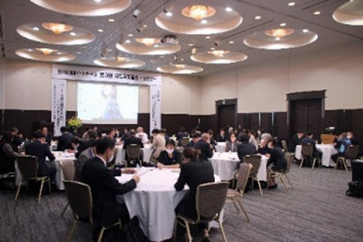 令和7年10月24日(金曜日)13時30分~健康経営推進パートナーの会「第3回経営者交流会・セミナー」が熊本市中央区のホテル熊本テルサにて開催されました。今回は健康経営推進パートナーの会会員企業様30社と非会員企業様5社の経営者および管理者の方々を中心に53名、そしてみゆきの里関係者25名、合わせて78名の皆様にご参加いただきました。