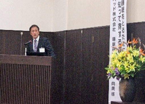 | ~健康経営は、未来の競争力~ 開会の挨拶は、「健康経営推進パートナーの会」会長でみゆきの里理事長の富島三貴より、今回から交流会とセミナーを一本化し、「学び」と「つながり」を同時にかなえる新たな企画としたこと、そして参加者から最も要望の多かった「睡眠」をテーマに決めた旨の説明がなされました。また健康経営に関する最近の状況と自身の取組姿勢を述べたうえで、本日の交流会が、会員企業の皆様にとって、新たな発想やヒントを得る時間となることを祈念して、開会の挨拶を締め括りました。 |
